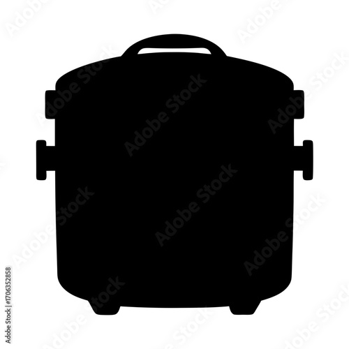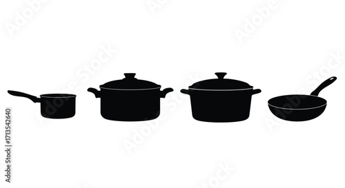 Collection of black silhouette cookware illustrations including pots and pans for kitchen use.