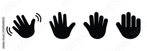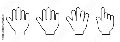 Black outline drawing of an open hand with fingers spread wide five fingers palm