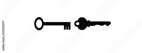 Minimalist Key Vector Icon. Silhouette Design on White Background