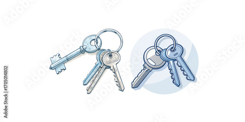 Print   Vector Illustration of Keyring with Keys – Security and Access Concept Design