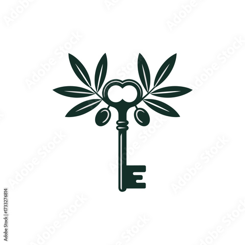 floral key logo, botanical leaves, vintage security icon, garden brand, nature concept, elegant mark, vector illustration