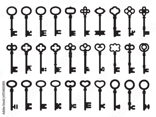 ornamental vintage key vectors antique silhouette set ideal for pattern design and branding