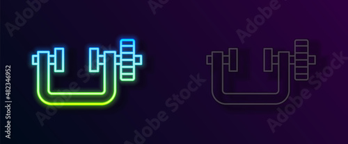 Glowing neon line Clamp and screw tool icon isolated on black background. Locksmith tool. Vector