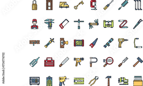 Locksmithing tools- Icons Modern Illustration Symbol Design Template for Web and Mobile UI. Editable Stroke Pictogram for Business Projects and Apps.
