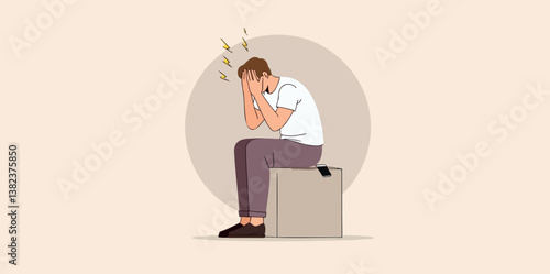 Conceptual illustration showcasing a man experiencing a severe headache and stress symptoms