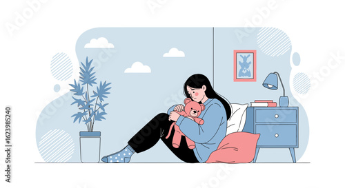 Isolated Young Woman Embracing Knees Depicting Solitude And Emotional Turmoil