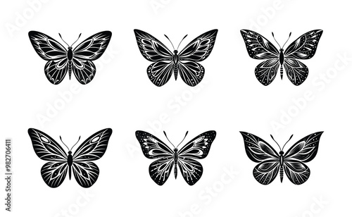 butterfly silhouette, group of butterflies, black and white, wildlife