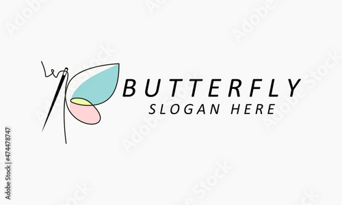 Vector illustration line art butterfly logo design with needles