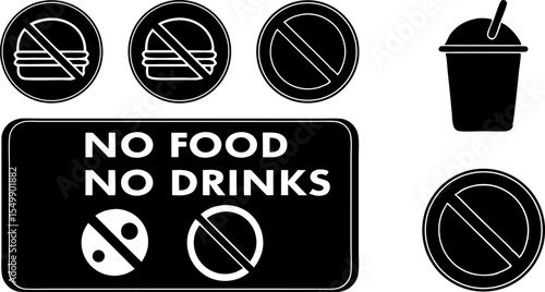 Bar and drinks set icon. No alcohol, cocktail, coffee cup, bar sign, telephone, champagne tower, wine and cheese, martini glass, bottle opener, money stack.
