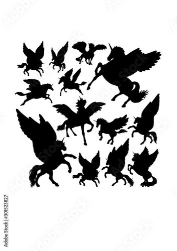Pegasus ancient creature mythology silhouettes. Good use for symbol, logo, web icon, mascot, sign, or any design you want.