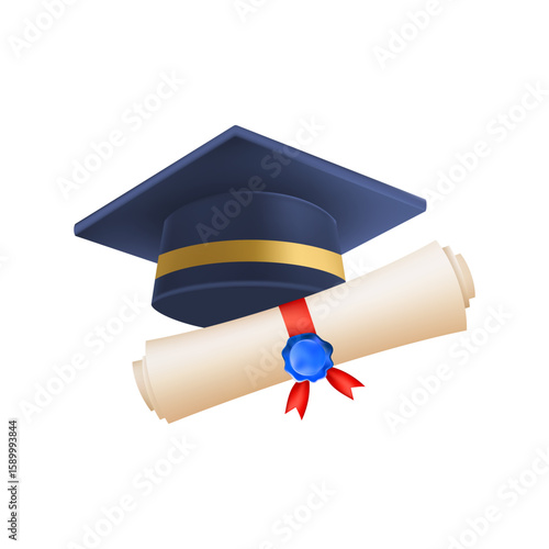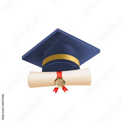 Realistic Blue graduate cap. 3D Graduation Doctoral hat.