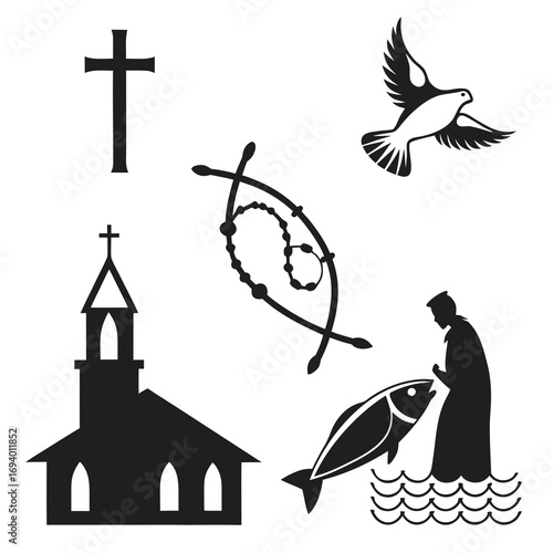Sacred Symbols: A collection of meticulously crafted silhouettes showcasing the essential artifacts and attire associated with spirituality and faith.