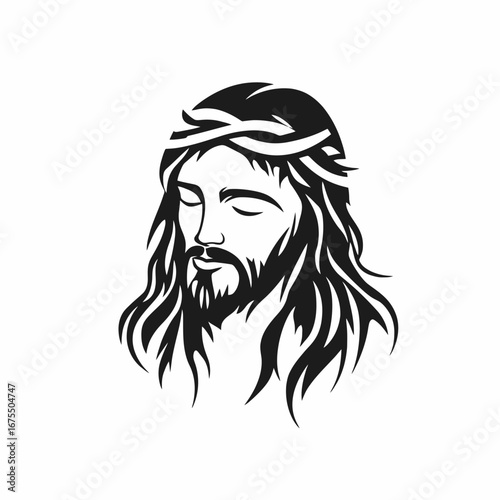 Serene depiction of Jesus Christ in a minimalist vector art silhouette