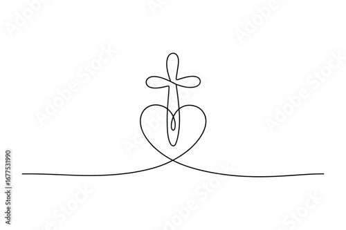 Elegant continuous line drawing of a christian cross symbol artistically rendered on a clean surface vector