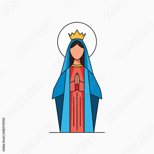 Elegant church bell tower illustration with praying woman on the top and cross on the top