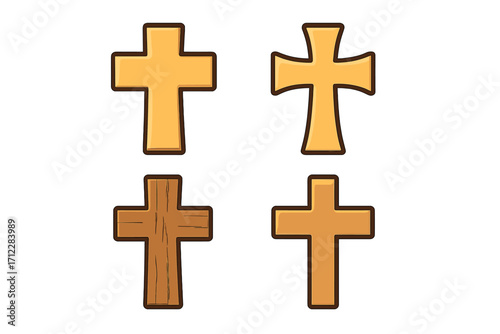 Simple wooden cross outline illustration with rustic wood grain spiritual religious symbol artwork