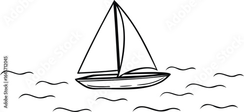 Minimalist sailboat illustration floating serenely on a calm blue sea representing nautical voyage and relaxation with a clean white background