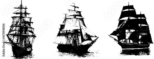 Collection of Sail Boats Graphic Vector Designs Sailing Ship Water Transport Sea Ocean Nautical Vessel Cruise Adventure Journey Travel Navigation Silhouette