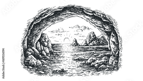 Dramatic illustration of a large cruise ship sailing on the ocean