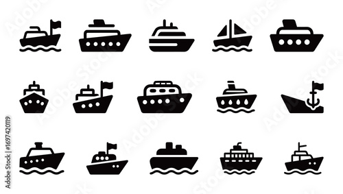 Various Boat Icons with Different Styles and Colors on White Background