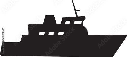 Cruise ship silhouette, luxury ocean liner vector, black and white travel illustration, maritime transport artwork, tourism vacation sea voyage design