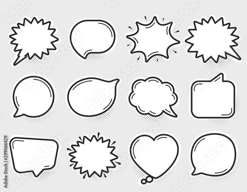 Comic explosion speech bubble vector shapes, speech bubble silhouettes, starburst designs in black. Ideal for graphic design, comic book art, pop art, and digital illustrations