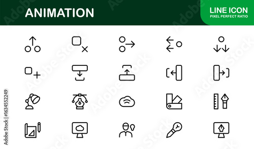 Premium quality cinema industry thin line design set. Filming minimalistic symbol pack. Outline movie technology template of icon, typography, logo, pictogram and illustration concept