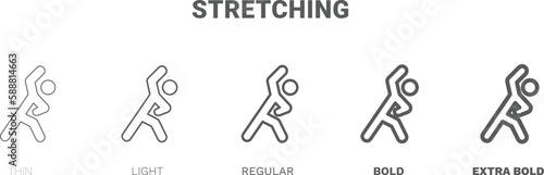 Stretch Routine Icons. Outline icon set of full body stretching routines: neck tilt, shoulder roll, side bend, hamstring stretch,
