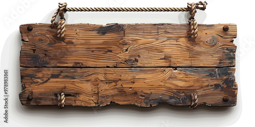 Wood board on rope, hanged signboard and banner with wood texture cartoon set