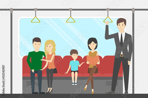 Set of tourist, traveler people. Family at vacation, group of people in airport with luggage. Flat design vector illustration