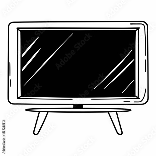 vintage tv set, black and white retro tv illustration featuring classic antennas, control knobs, and vent lines. ideal for nostalgic or vintage media content, Retro TV Set. Vector Vintage Television.