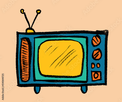 Retro  television. Halftone collage cutout element in a surreal bitmap style for scrapbook, poster, t-shirt. Vector illustration isolated on transparent background with dotted photocopy texture.