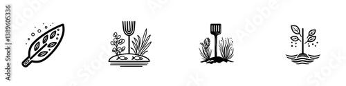 Plant Growth Stages:  A Collection of 15 Seedling Icons
