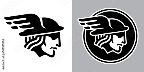 mercury profile logo with minimalist roman god illustration