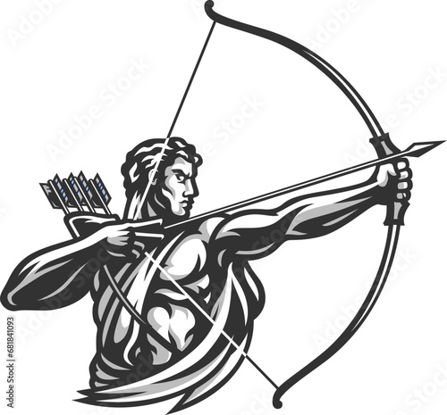 Greek and roman god Apollo. Hand drawn antique style logo or print design art vector illustration.