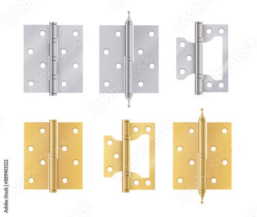 Door hinge icon. Door hinge buckle. Door hinges construction hardware. Gates and windows tools. Repair tool. Lock or open the door or window.  Cabinet hinges
