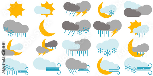 Weather icon set. Forecast weather flat symbols