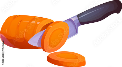 Carrots and cut sliced with knife on wooden cutting board. Vector illustration isolated on white background