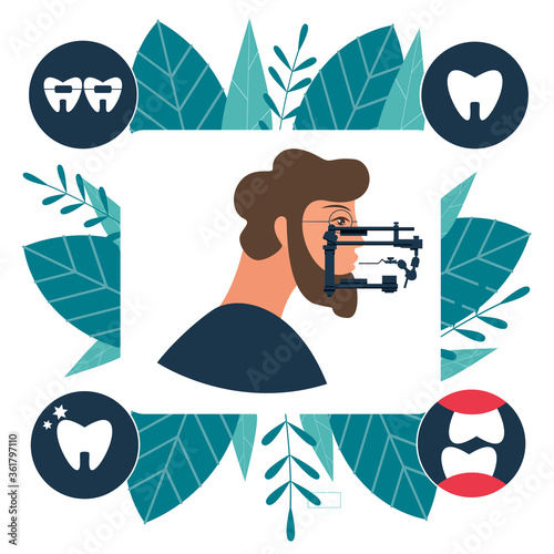 Vector isolated illustration of human jaw with teeth. Dentist. Treatment of teeth. Teeth whitening. Brushing teeth. Dentistry.
