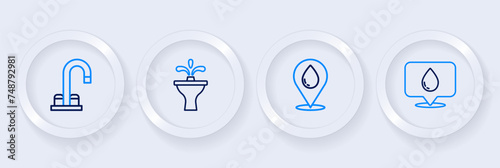 Set line Water tap, drop forbidden, Industry pipe and valve, Rubber gloves, Bucket, metallic, and icon. Vector