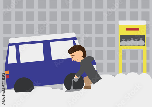 ドライブで困っている家族のベクターイラスト素材/車/旅行/事故/危ない