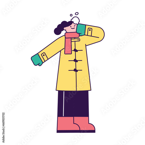 man playing snowball fights пгн throwing snow ball wearing winter clothes male cartoon character full length flat isolated