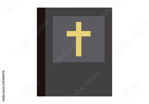Icono de biblia negra en fondo blanco.