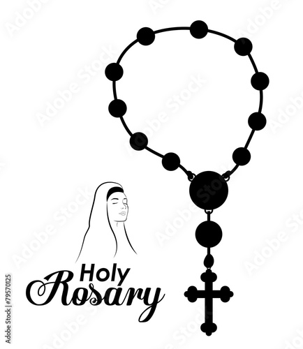 Rosary beads silhouette. Prayer jewelry for meditation. Catholic chaplet with a cross. Religion symbol. Vector illustration.