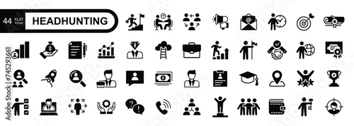 Headhunting And Recruiting web icon set. Included the icons as Job Interview, Career Path, Resume and more. Simple vector illustration.
