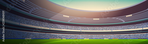 Soccer stadium vector illustration. Football, arena, field, bleacher. Football concept. Can be used for topics like match, championship, sport, fan club