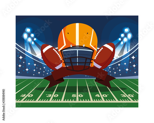 Football arena field with bright stadium lights vector design.