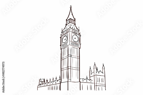 big ben illustration detailed illustration of big ben and the houses of parliament against a white background ideal for travel and history blogs.