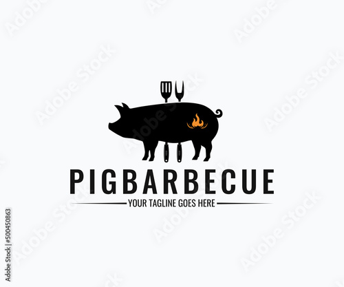Pig barbecue logo design. BBQ, Barbecue, Barbeque, and Grill logo design template.