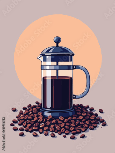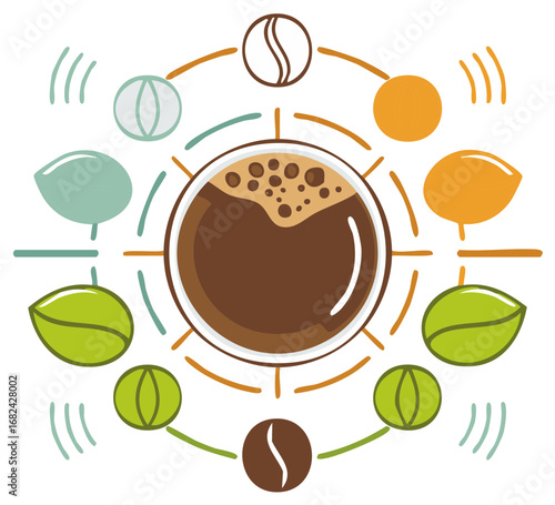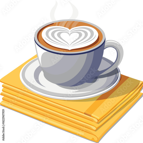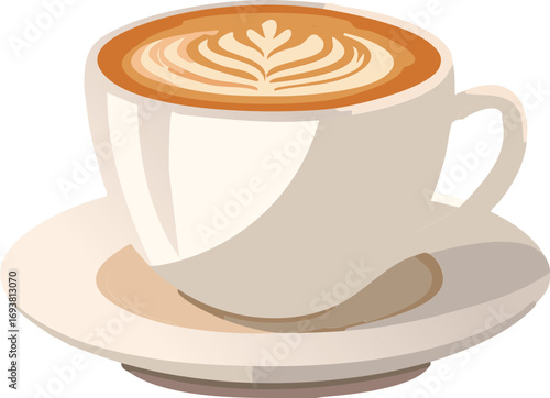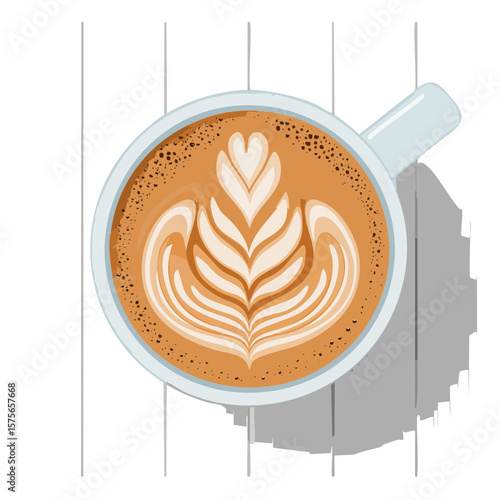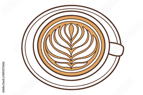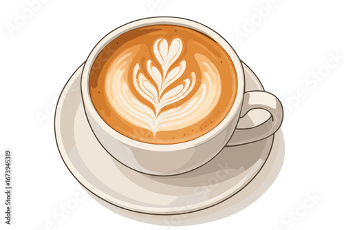Elegant Latte Art in Coffee Cup Vector Illustration